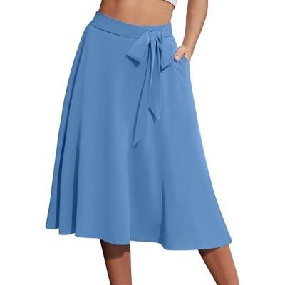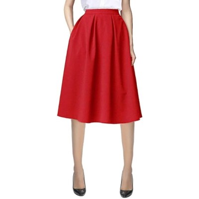 Women's A-Line Midi Skirt with Pockets High Waist Flared Below The Knee Skirts