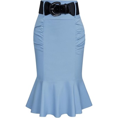 Women’s High Waisted Peplum Midi Pencil Skirt Work Business Skirts with Belt