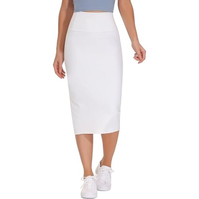 Women's Knee Length Stretch Pencil Skirt High Waisted Bodycon Midi Straight Skirt