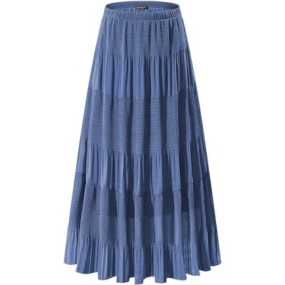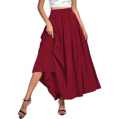 Women's Casual Pleated High Waist Solid Flowy A Line Long Maxi Skirt