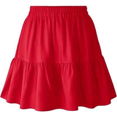 Womens Elastic High Waist Tiered Mini Skirt with Shorts Underneath Cute Boho Pleated Ruffle Skirt with Pockets