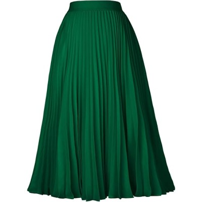 Women's Chiffon Elastic High Waist Pleated A-Line Flared Maxi Skirts