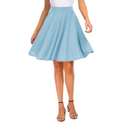 Women's Casual Stretchy Flared Mini Skater Skirt Basic A-Line Pleated Midi Skirt