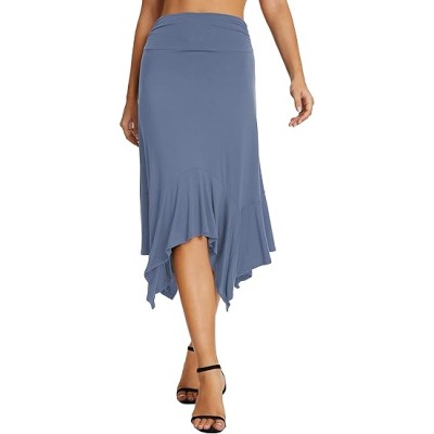 Women's Flowy Stretchy Skirt Handkerchief Hemline Midi Skirt
