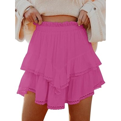 Flowy Shorts for Women Casual Boho Ruffle Tiered Skorts High Waist Mini Skirts Golf Tennis Crochet Shorts