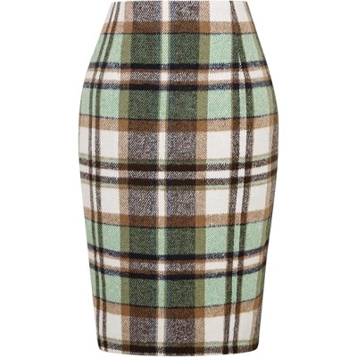 Midi Plaid Skirts for Women Fall Winter Knee Length Pencil Wool Skirt with Slit