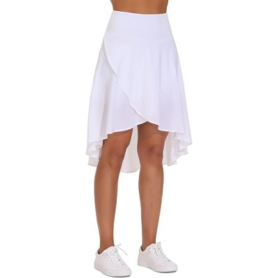 Women's High Waist Wrap Ruffle Hem Asymmetric Skort High Low Flowy Midi Skirt with Shorts