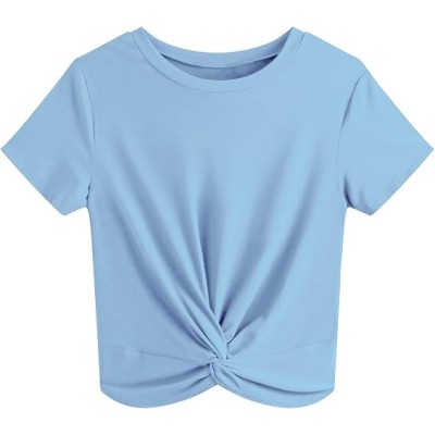 Women's Summer Causal Short Sleeve Blouse Round Neck Crop Tops Twist Front Tee T-Shirt