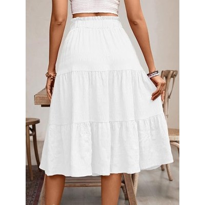 Women's Casual Summer Skirts Boho High Elastic Waisted Flowy Drawstring Ruched A Line Tiered Midi Dress Skirt