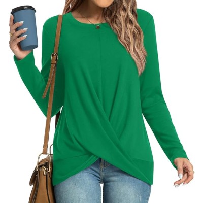 Women's Long Sleeve Tunic Tops Casual Crewneck T-Shirts Front Twist Top Tee Blouse For Leggings