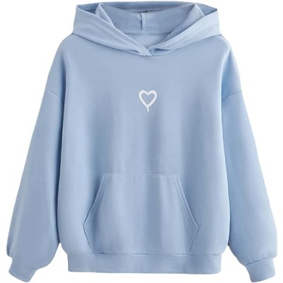 Girls Heart Graphic Print Long Sleeve Hooded Sweatshirt Pullover Tops