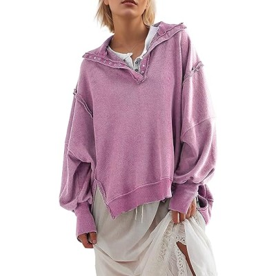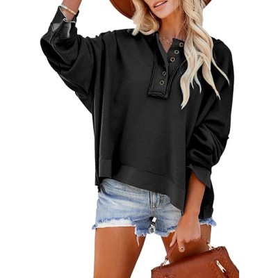 Women's Oversized Sweatshirt Casual Long Sleeve Button Henley Neck Pullover Tunic Tops Outfits