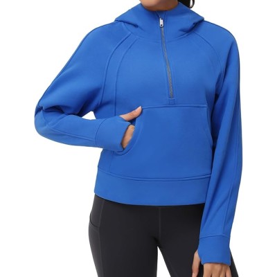 Womens' Hoodies Half Zip Long Sleeve Fleece Crop Pullover Sweatshirts with Pockets Thumb Hole