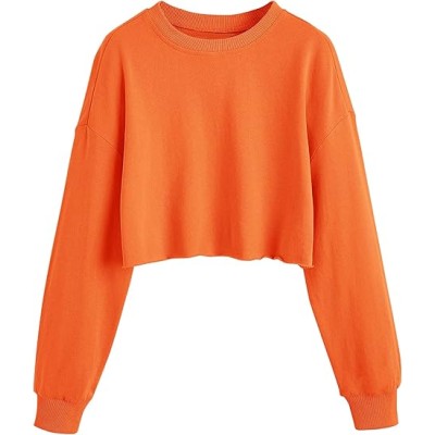 Women's Casual Long Sleeve Raw Hem Pullover Crop Tops Sweatshirts